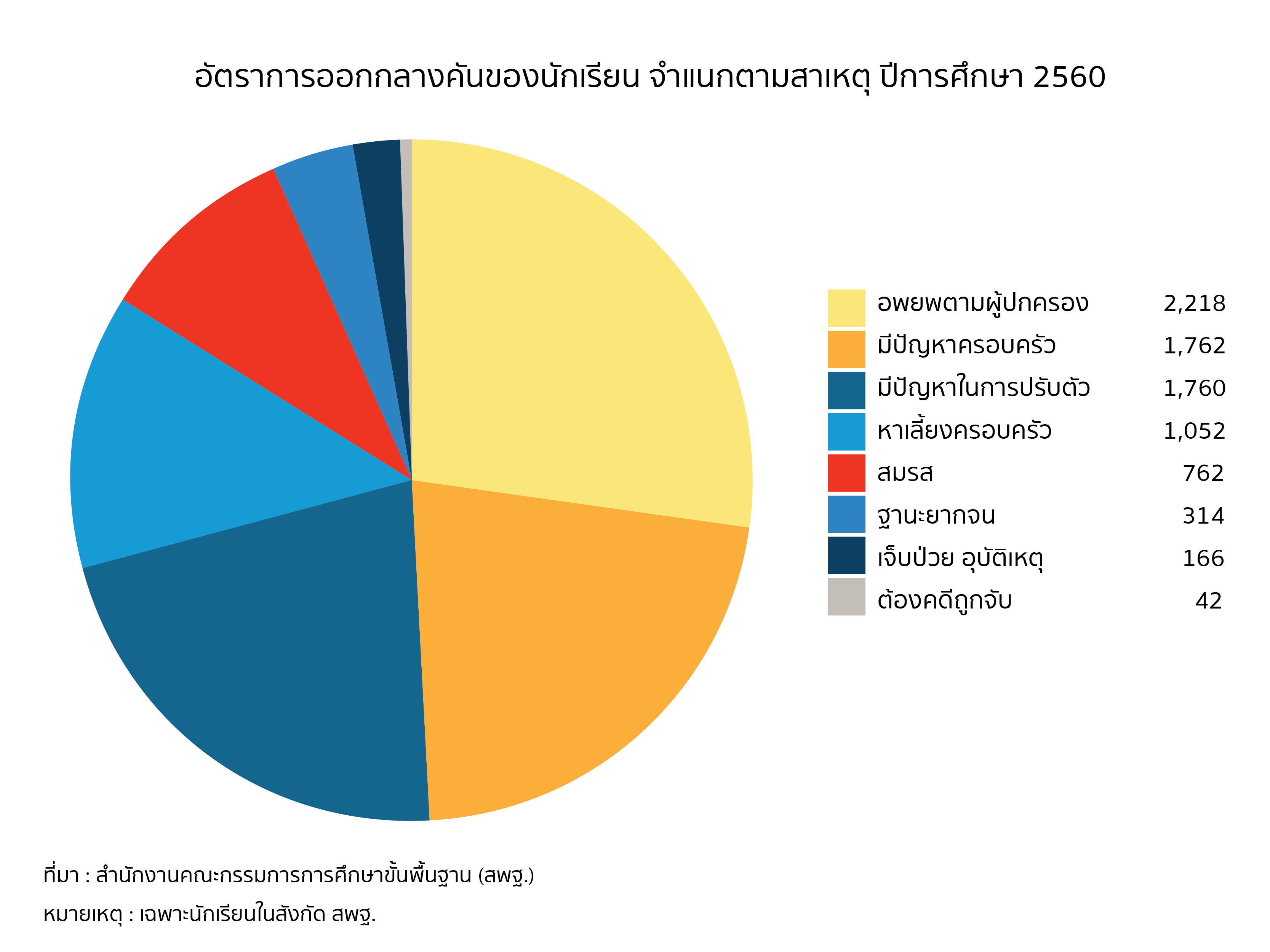 อย่างเด็กที่เกิดในครอบครัวที่คุณพ่อคุณแม่มีอาชีพที่ไม่มั่นคง มีรายได้ไม่สูงมากนัก ซึ่งในแต่ละปีมีเด็กนับแสนจากทั่วประเทศต้องออกจากการศึกษาก่อนครบตามหลักสูตร เพื่อเข้าสู่ภาคแรงงานเร็วกว่าที่ควรไปมาก ส่งผลให้เด็กขาดทักษะหลายๆ ด้าน การคิด พูด อ่าน เขียน ทักษะการคำนวณ หรือทักษะอื่นๆ ที่จำเป็นในการพัฒนาตัวเองสู่การประกอบอาชีพการงานในอนาคต และถูกจำกัดตัวเลือกอาชีพและรายได้อีกด้วย
